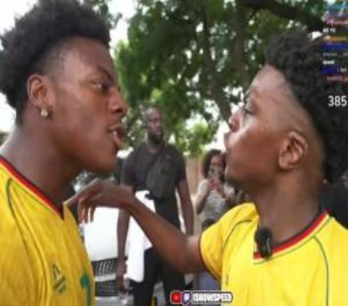 只见这位“高仿版甲亢哥”模仿着本尊的模样,一边和直播间观众互动,一边走向IShowSpeed。两人激动时的神态更是如出一辙,甲亢哥连连追问对方:“你妈妈是谁?” 为了证明自己才是正版,甲亢哥当场秀出标志性后空翻,显然这位“津巴布韦甲亢哥”还没练会这一招。