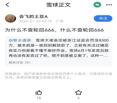事实上,在“金浤”账户拥有人金永荣被监管处罚的事件发酵后,雪球平台上就有用户要求封禁其他“大V”的声音,其中就包括此次被雪球封禁的“轮回666”。