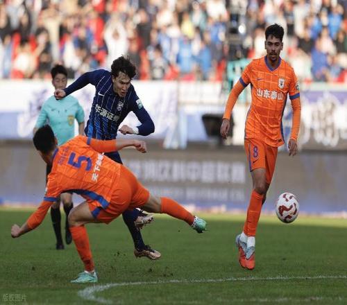比赛在雨中进行,湿滑的场地未能阻止泰山队展现行云流水的配合。开场后,双方迅速进入状态。第11分钟,武汉三镇队左路传中,达兰头球补射破门,因越位被判无效。VAR接连成为比赛焦点。第26分钟,克雷桑送出直塞,瓦科单刀破门,同样因越位被吹。三分钟后,武汉三镇队图多列停球杀进禁区,右脚捅射破门,但再一次被吹越位。比赛前半小时,双方共有三粒进球因越位被取消。第38分钟,僵局终于被打破。克雷桑前场直传,泽卡拿球后突入禁区内左脚抽射破门。上半场补时阶段,泽卡右路拿球横敲,刘洋包抄到后点推射破门。泰山队带着2-0的领先优势进入中场休息。